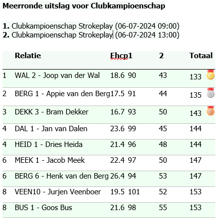 Na 18 holes bleken de “oude rotten” zich herpakt te hebben en voerden Joop van der Wal met 90 en Appie van den Berg met 91 slagen het veld aan.